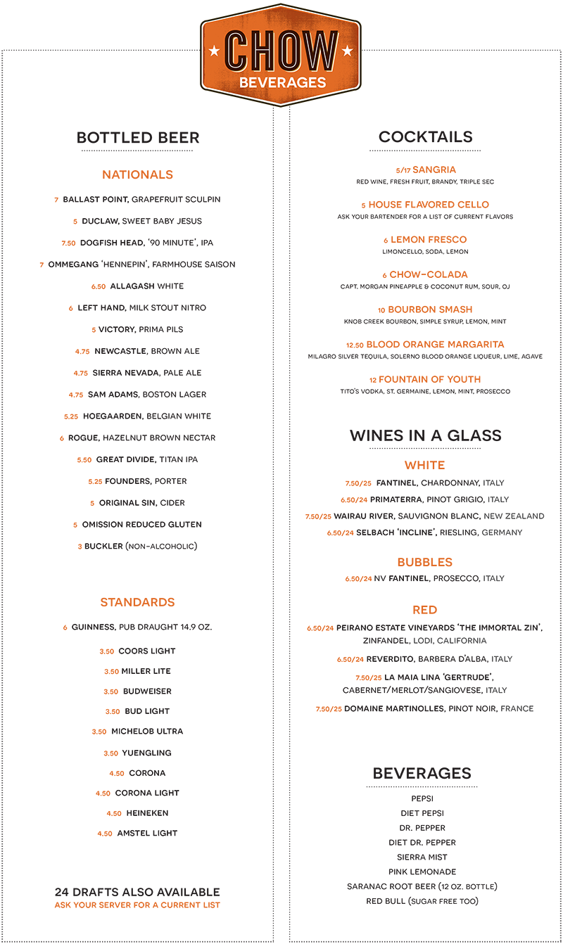 Chow Pizza and Wings: Beer Menu